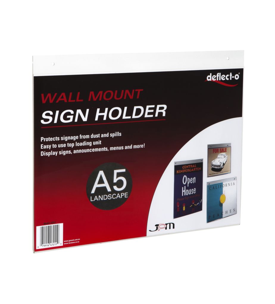 Designed to hold menus, fire regulations, OSH signs, staff information, property listings etc. Provides protection from dust and spills. Manufactured from high impact clear plastic. Signs can be changed easily without undue damage to the wall.